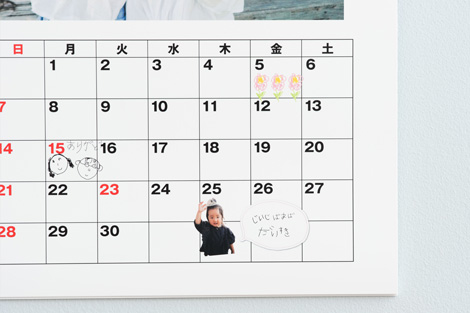 スタンプや文字入れ機能を活用したフォトカレンダーを飾れば、毎日がちょっぴり幸せに。