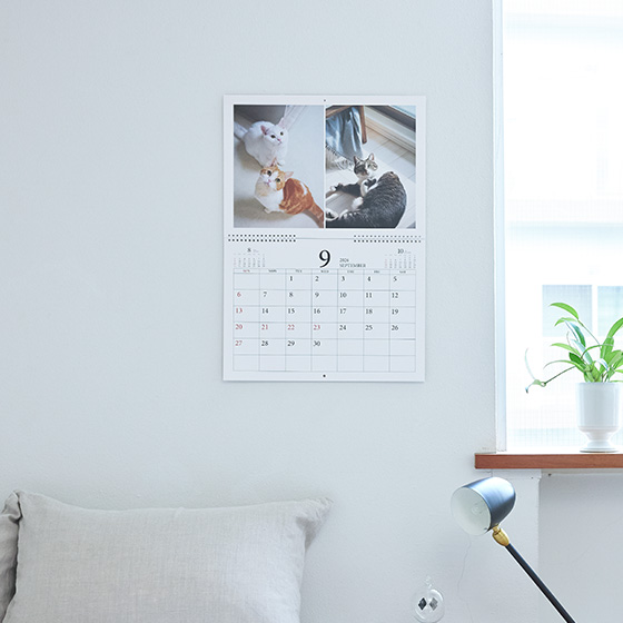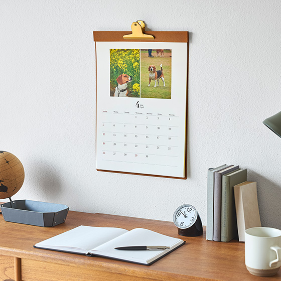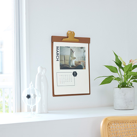 月別のシートをまとめてクリップで挟んだおしゃれな仕様。サイズはA4かA3を選べます。