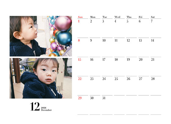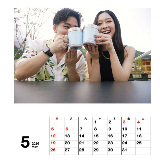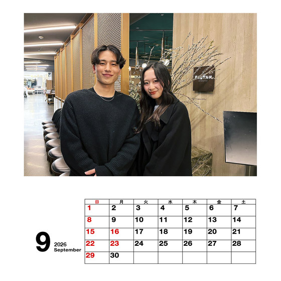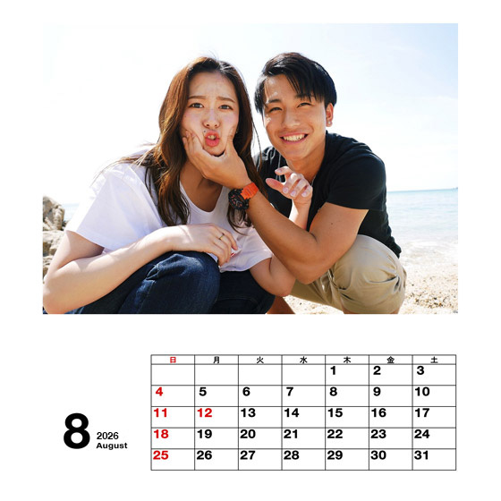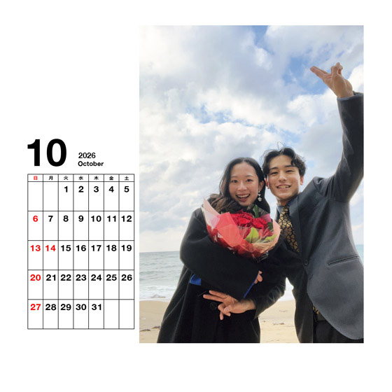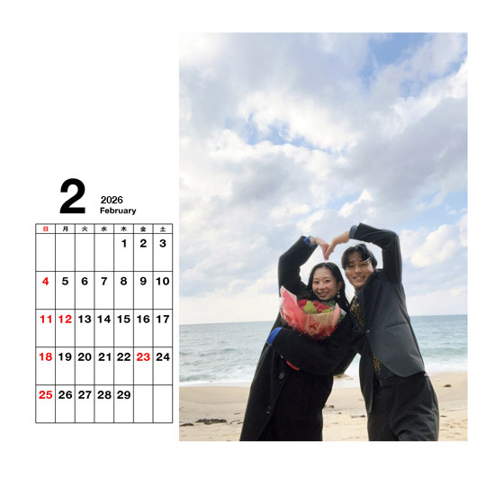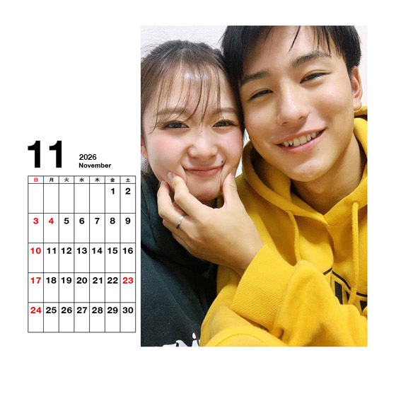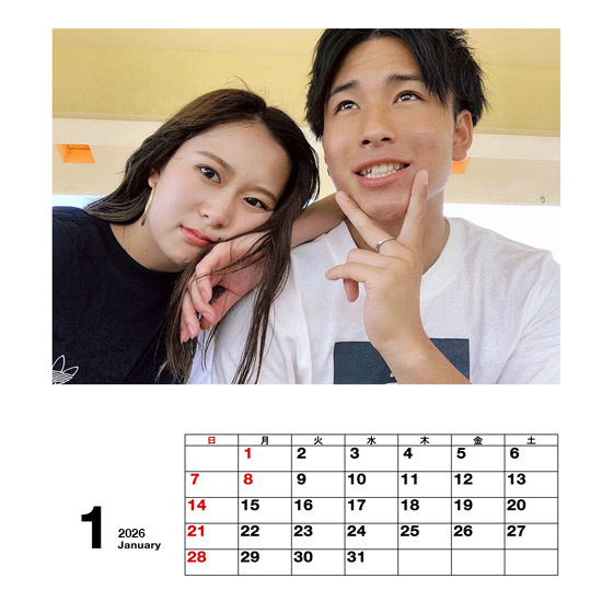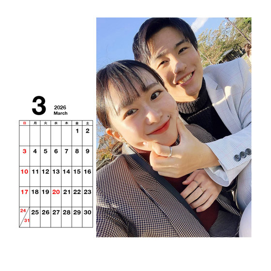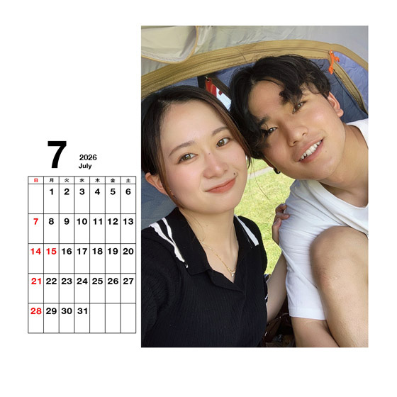 撮りためた2ショットで作る二人の思い出カレンダー。スマホの日常写真から特別なおでかけまで、シーンも多彩で楽しい仕上がり。ちょっと照れくさいけど、見るほどにうれしさが込み上げてきて、気分も上がりそうです。