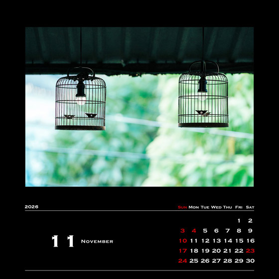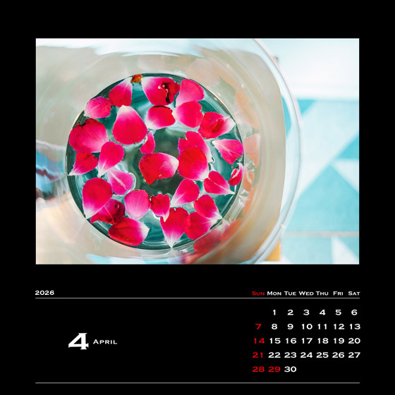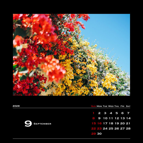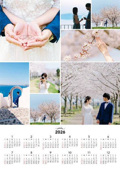 ウェディングの写真をまとめた幸せあふれるカレンダー。ロケーション撮影の写真は抜け感があるので、たくさん使ってもきれいにまとまります。ポスタータイプはインテリアとしてもおしゃれ。