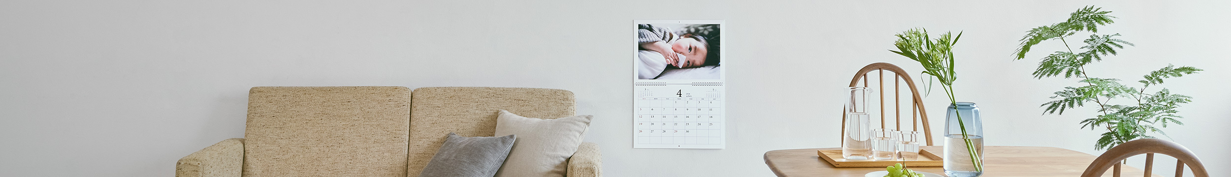 写真を大きく入れた壁掛けカレンダーは、インテリアとしてもおしゃれ。暮らしの中でお気に入りの写真が目に入ると、なんだかやさしい気持ちになれます。とくにポスタータイプは額に入れるとインテリア性が抜群にアップし、毎年新しいカレンダーに入れ替えるのも楽しみに。写真の選び方や飾り方に自分らしさを発揮して、居心地のよい幸せな空間をつくれます。