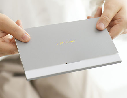 「+precious」は、結婚(ブライダル)、子どもの誕生・成長、記念日など、かけがえのないプレシャスなシーンに最適な、高品質でスタイリッシュな商品をご用意しています。用途に合わせて、お好きなスタイルをお選びください。