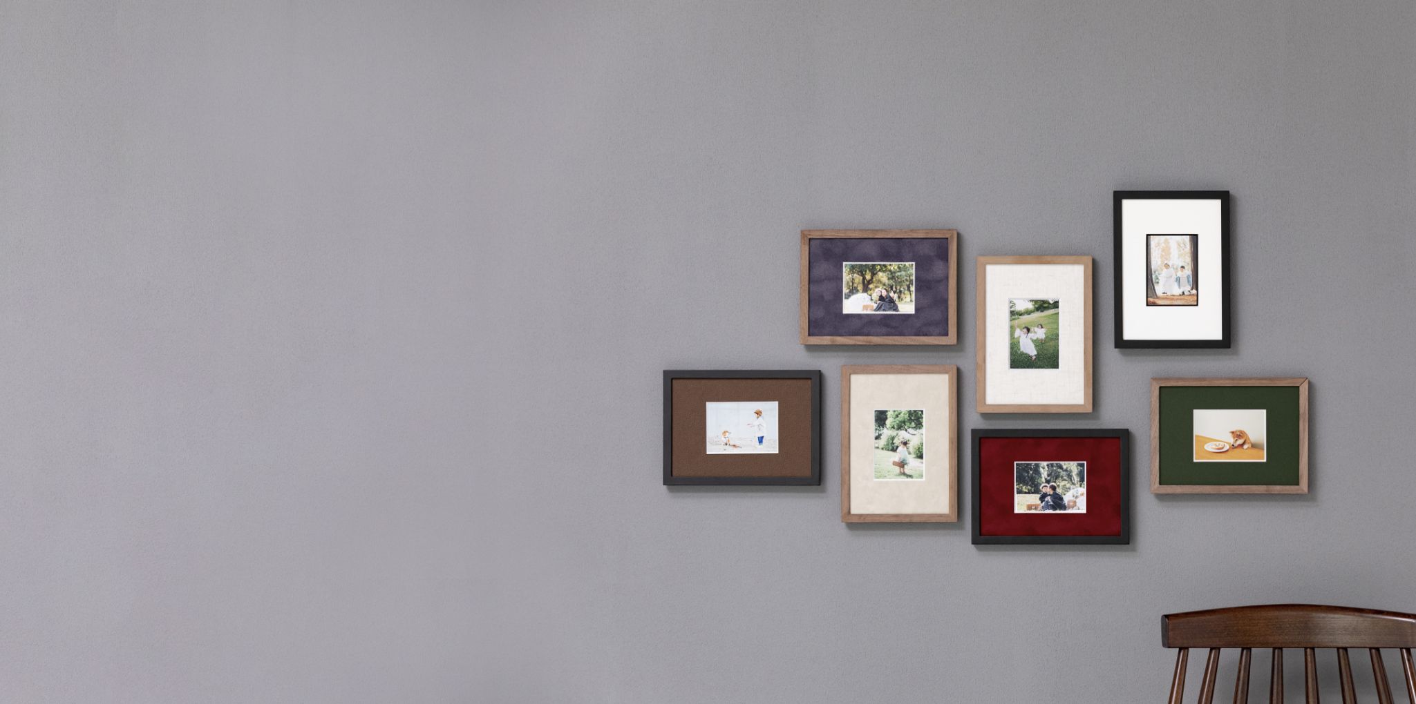写真をアップロードすることで、10色のマットと2色のフレームの組み合わせをお試しいただけます。
