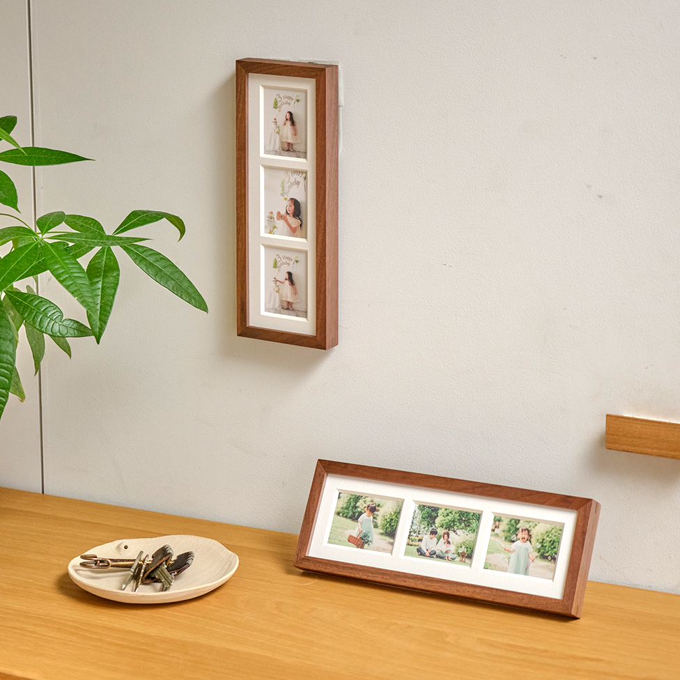 約85×59mm(L版の約半分)の写真が3枚額装される15cmスクエアサイズのフレームです。