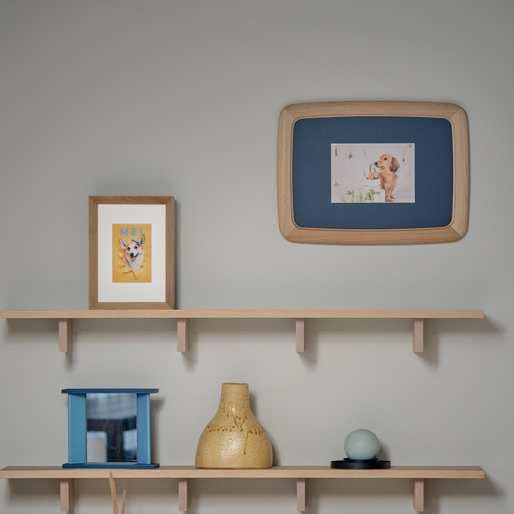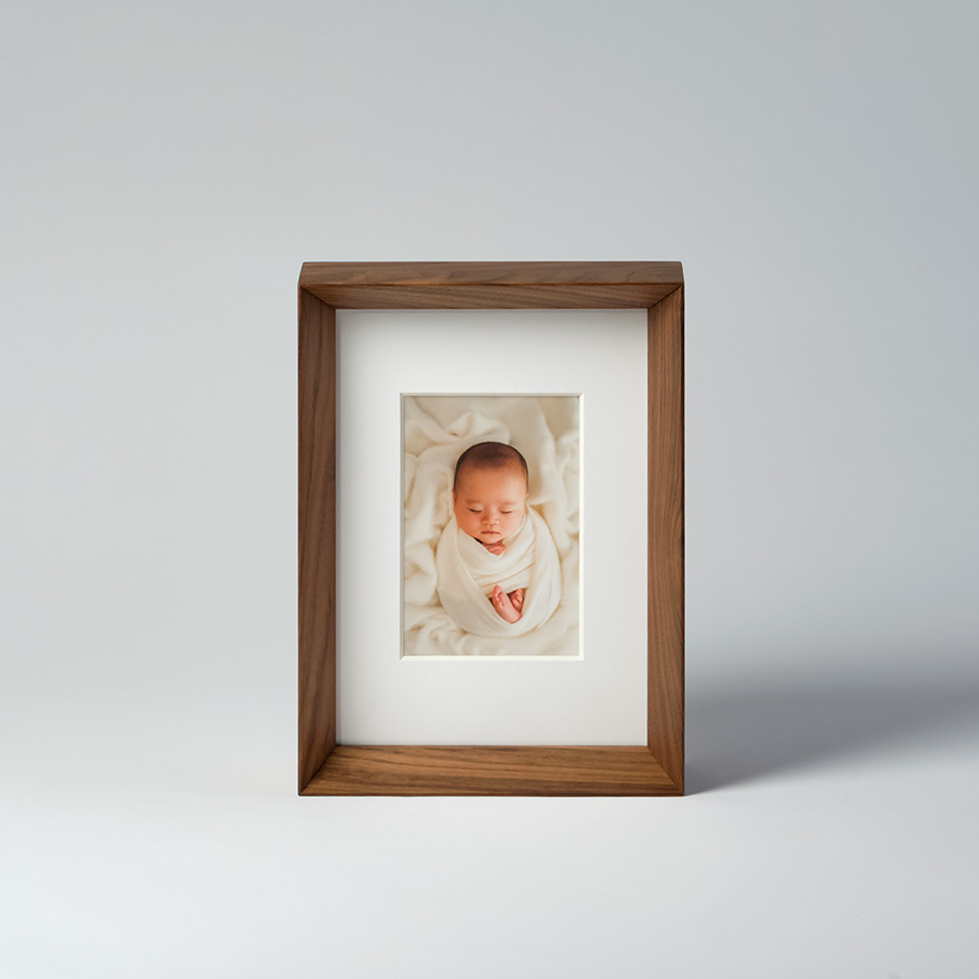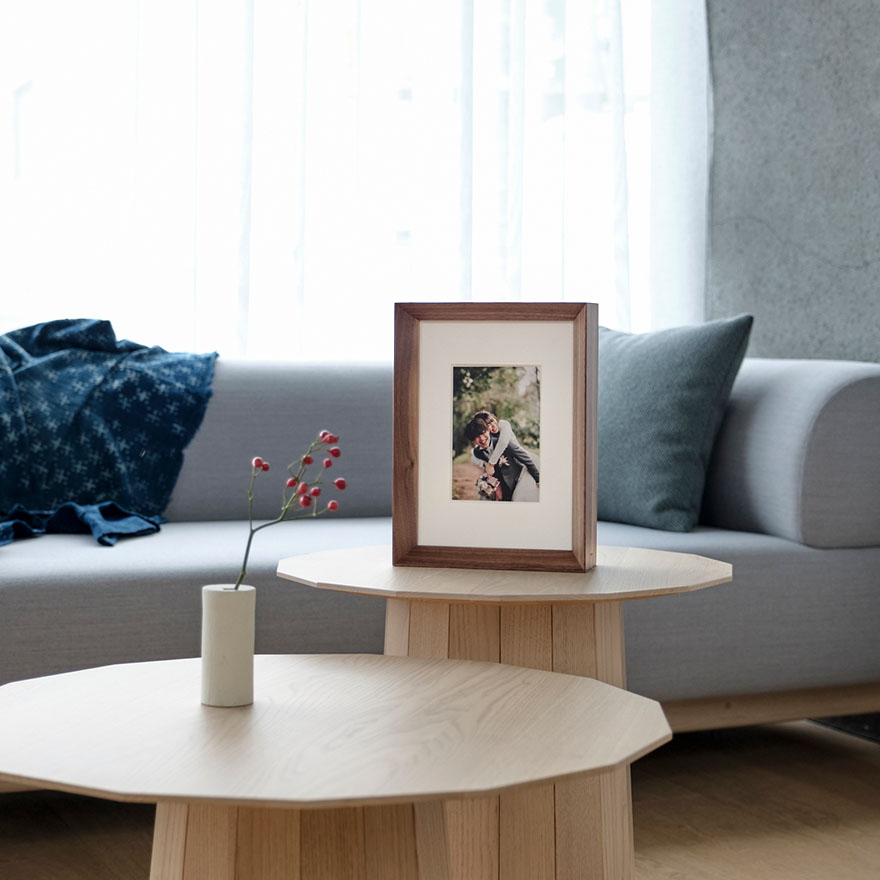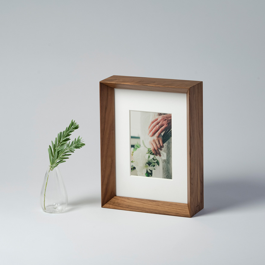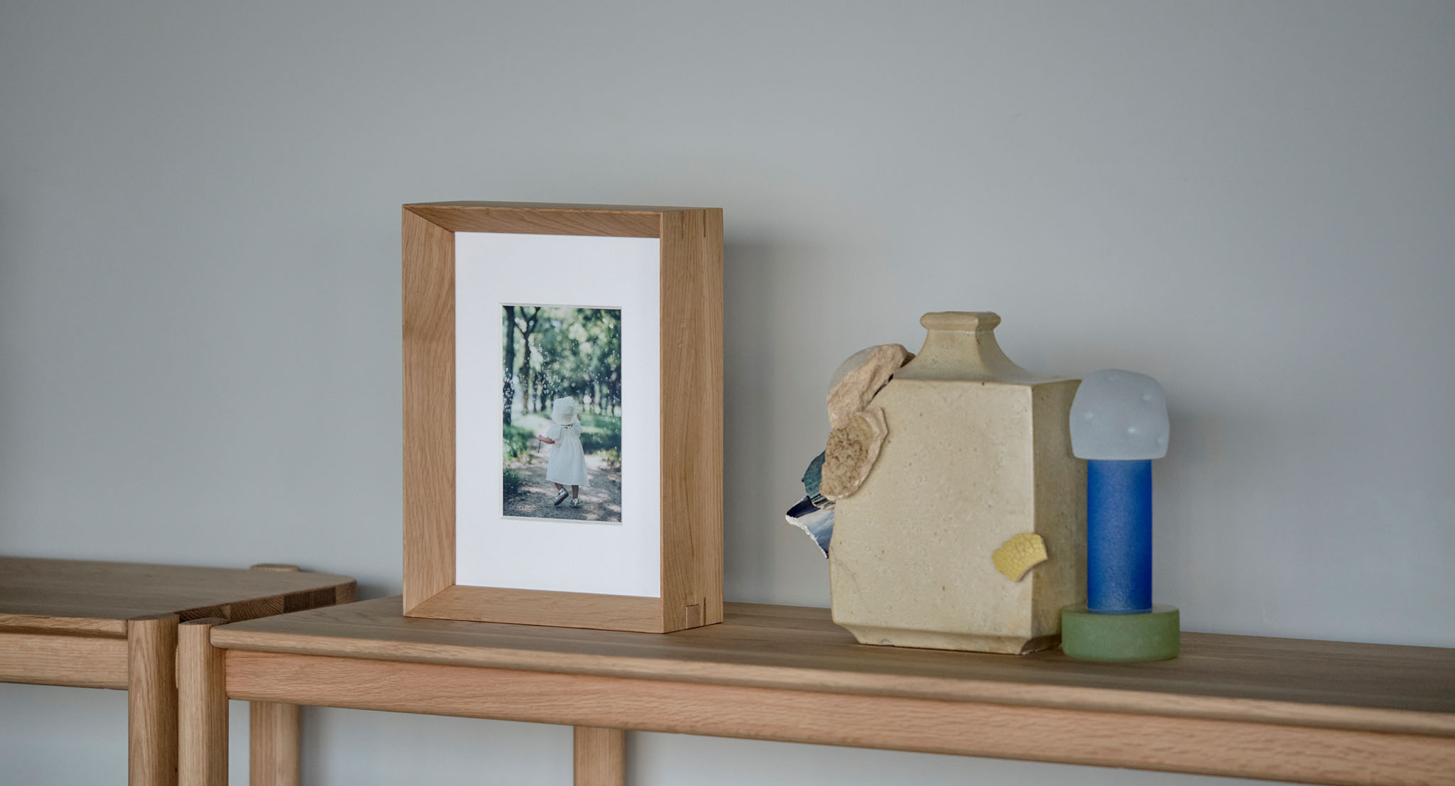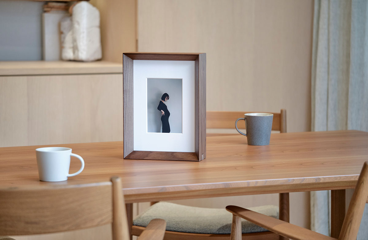 ナチュラルマークがフレームの細部に現れ思い出を彩る国産「オーク材」を採用、ナチュラルなインテリアにマッチする「ピュアオーク」塗装仕上げ。