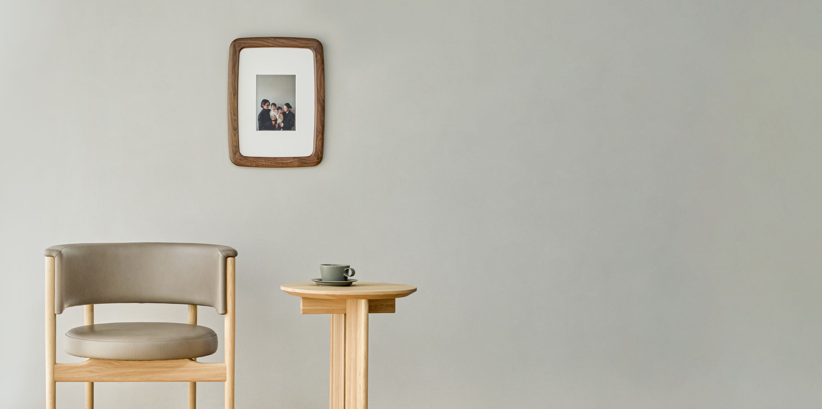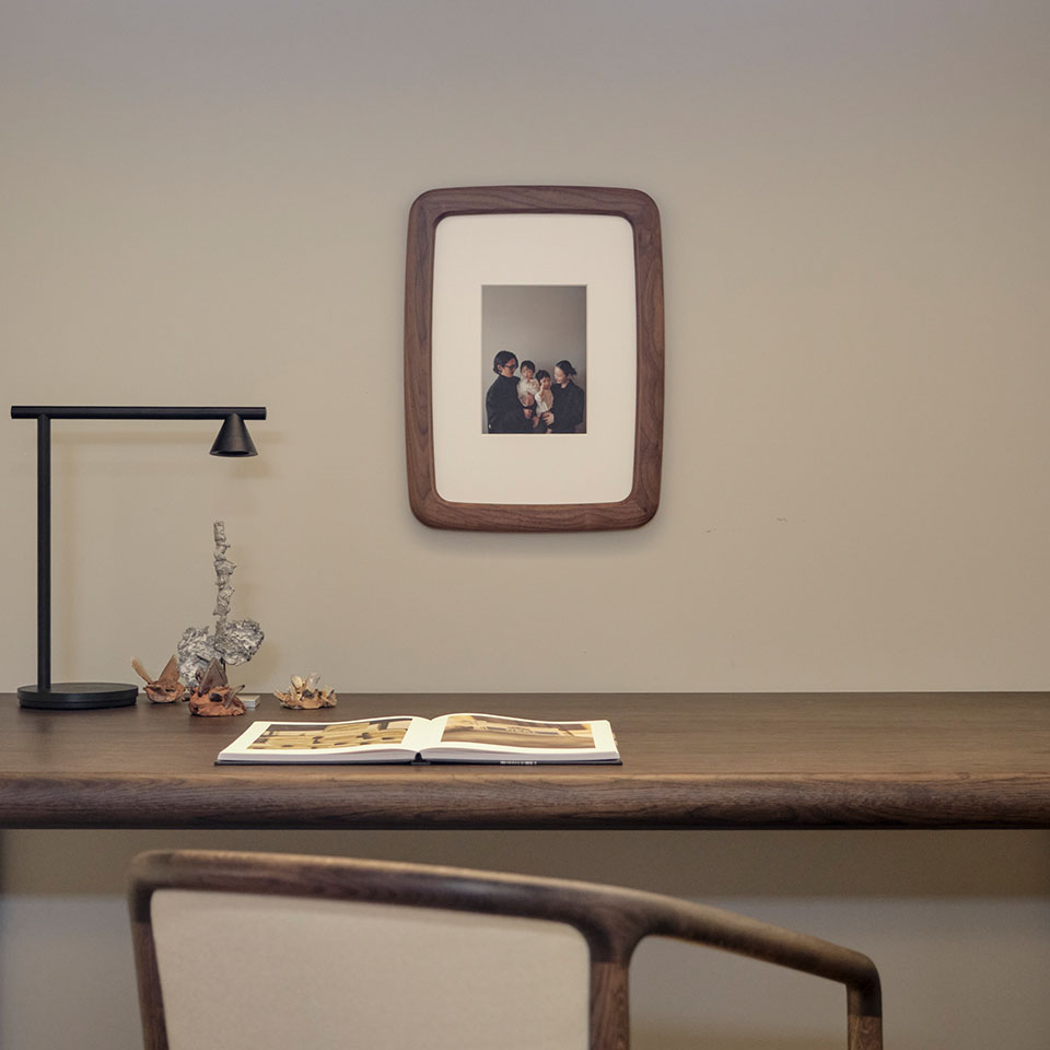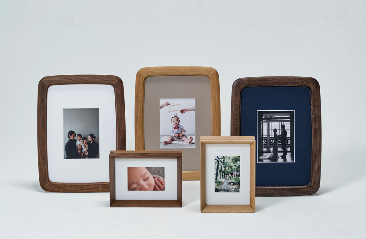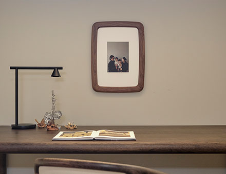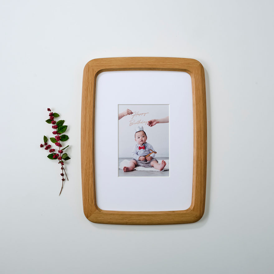 ナチュラルマークがフレームの細部に現れ思い出を彩る国産「オーク材」を採用、ナチュラルなインテリアにマッチする「ピュアオーク」塗装仕上げ。