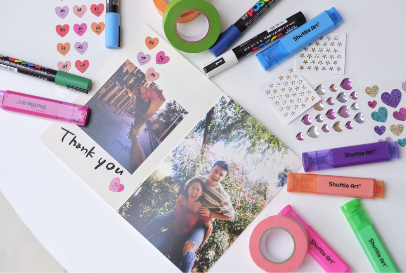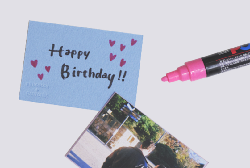 写真プリントをオリジナルカードに貼り、裏面に手書きでメッセージが書きこむことができます。